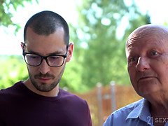 Skinny grandmother gets fellatio