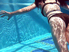 Podvodkova swimming in blue bikini in